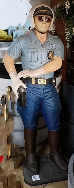 Add a strong and authoritative presence to your space with this Police Officer fiberglass statue. Designed with realistic detail, this piece makes a bold visual impact and enhances any themed environment.