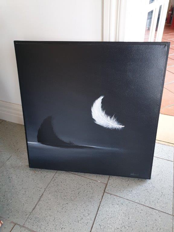 A striking artwork by Rod Cameron titled White Feather. This piece makes a bold visual statement and is perfect for modern interiors, galleries, or feature walls.
